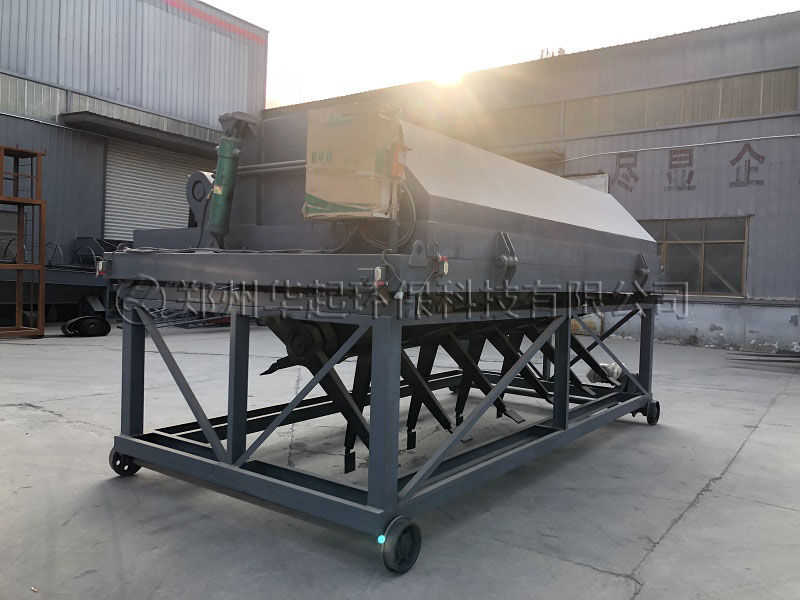 槽式發酵翻堆機由傳動裝置、提升裝置、行走裝置、翻堆裝置、轉移車等主要部件組成。電動機直接將動力傳給擺線針輪減速器經鏈輪傳動至翻堆滾筒,滾筒上的翻拋翅呈排狀分布,可將發酵槽內的物料翻轉攪拌並向後移動,起到翻堆速度快、攪拌均勻的效果,從而達到物料與空氣的充分接觸,使物料的發酵效果更好。控製櫃集中控製,可實現手動或自動控製功能。配有軟啟動器,啟動時衝擊負荷低。撥齒堅固耐用,對物料具有一定的打碎和混合功能。